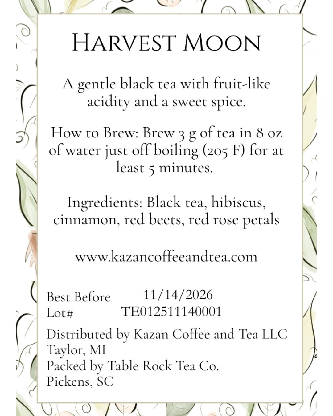 Ingredients: Black tea, hibiscus, cinnamon, red beets, red rose petals.