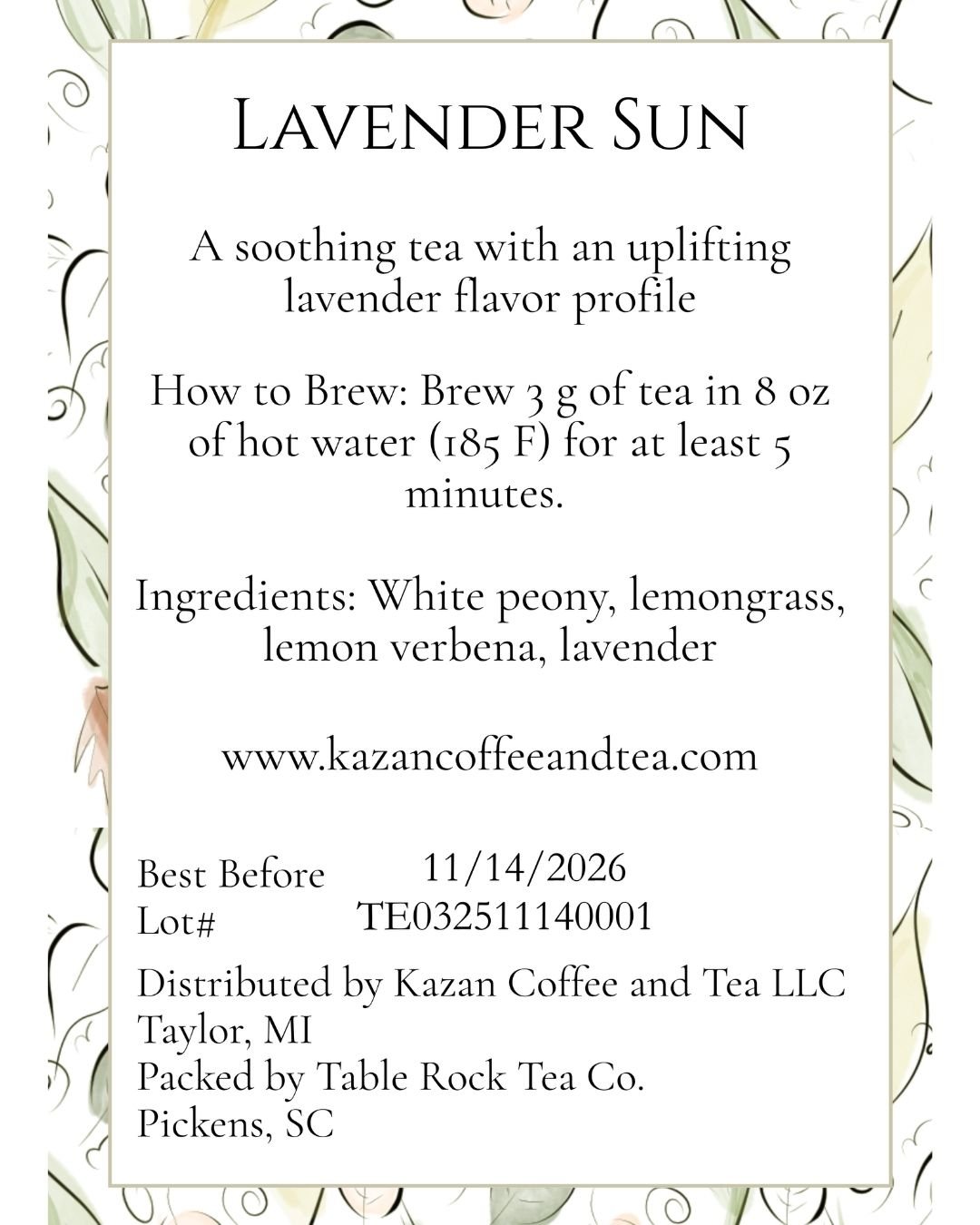 TE03 - Lavender Sun  (Tea meter), Kazan Coffee and Tea